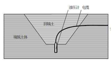 (5)心墻內(nèi)埋設(shè)滲壓計:當透水石為高進氣值時,也可采用不設(shè)反濾料的直接埋設(shè)方法。