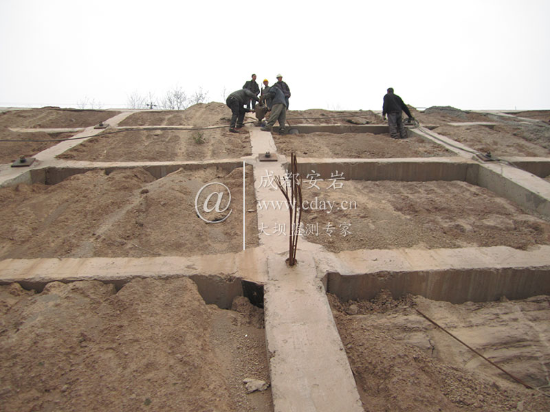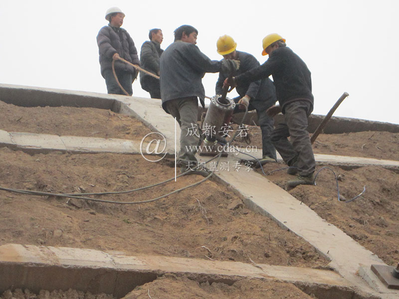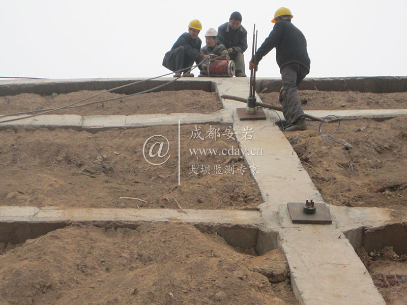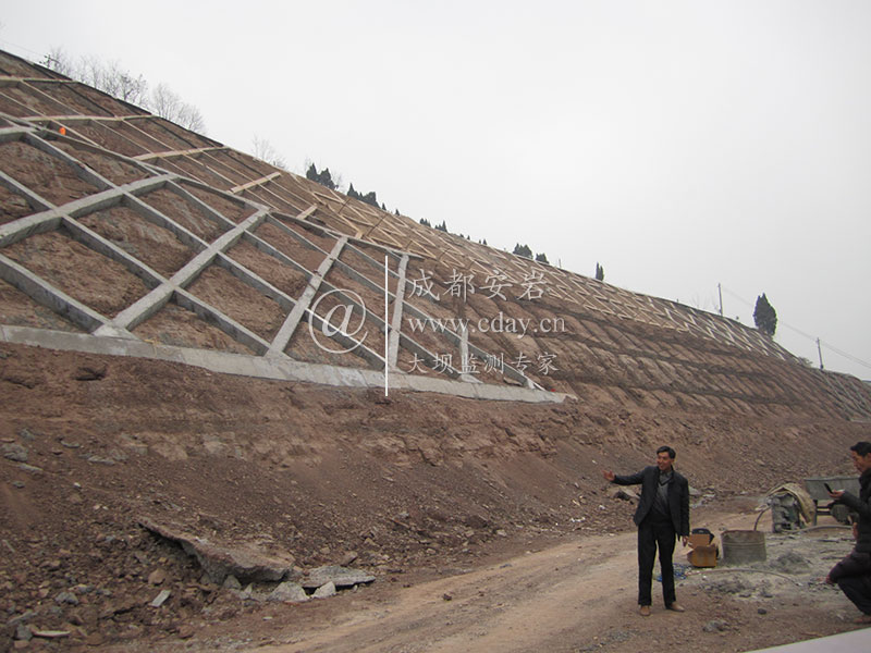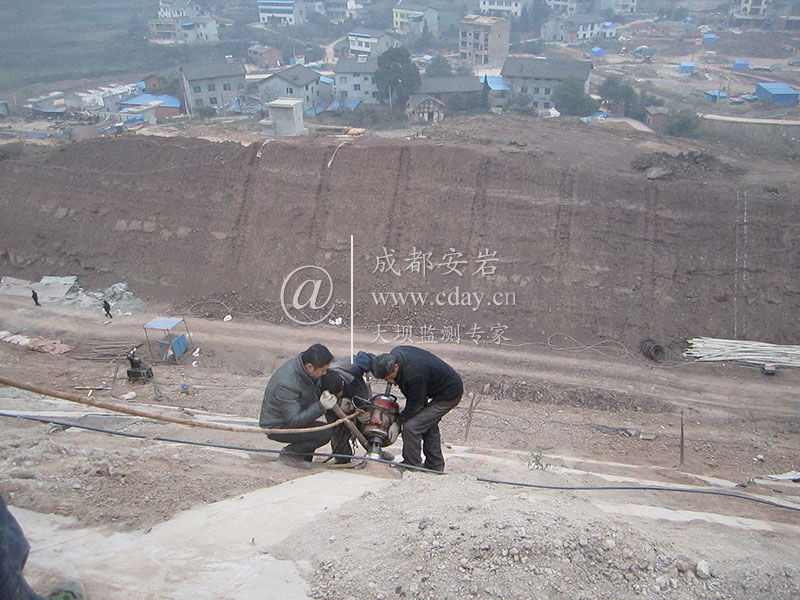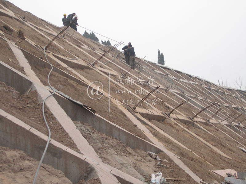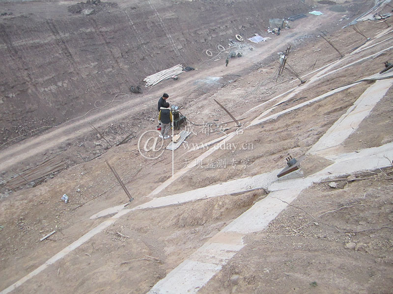 2012年,安巖物聯(lián)為中鐵八局蘭渝鐵路廣元西站大型邊坡(七級及五級邊坡等)提供大批量巖土工程安全監(jiān)測儀器:包括錨索測力計(jì)、多點(diǎn)位移計(jì)、水工屏蔽電纜、MCU分布式測量單元、GPRS無線數(shù)據(jù)采集系統(tǒng)等。圖為安裝現(xiàn)場。