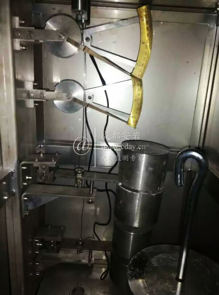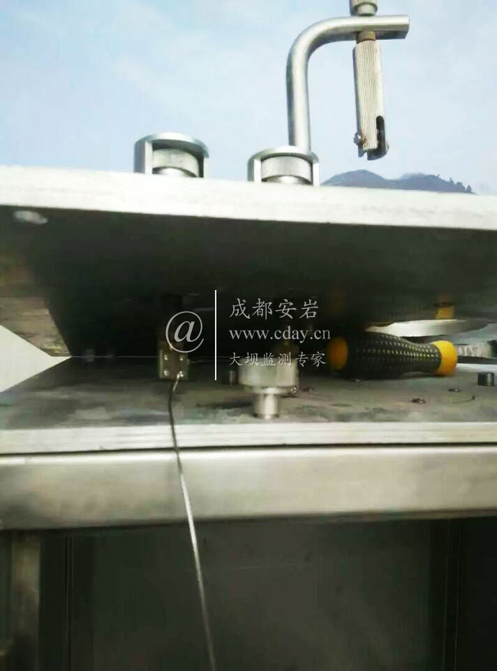 2016年12月,安巖物聯(lián)為甘肅隴南成縣磨壩峽水庫(kù)大壩安裝豎直傳高儀器。圖為豎直傳高安裝現(xiàn)場(chǎng)。